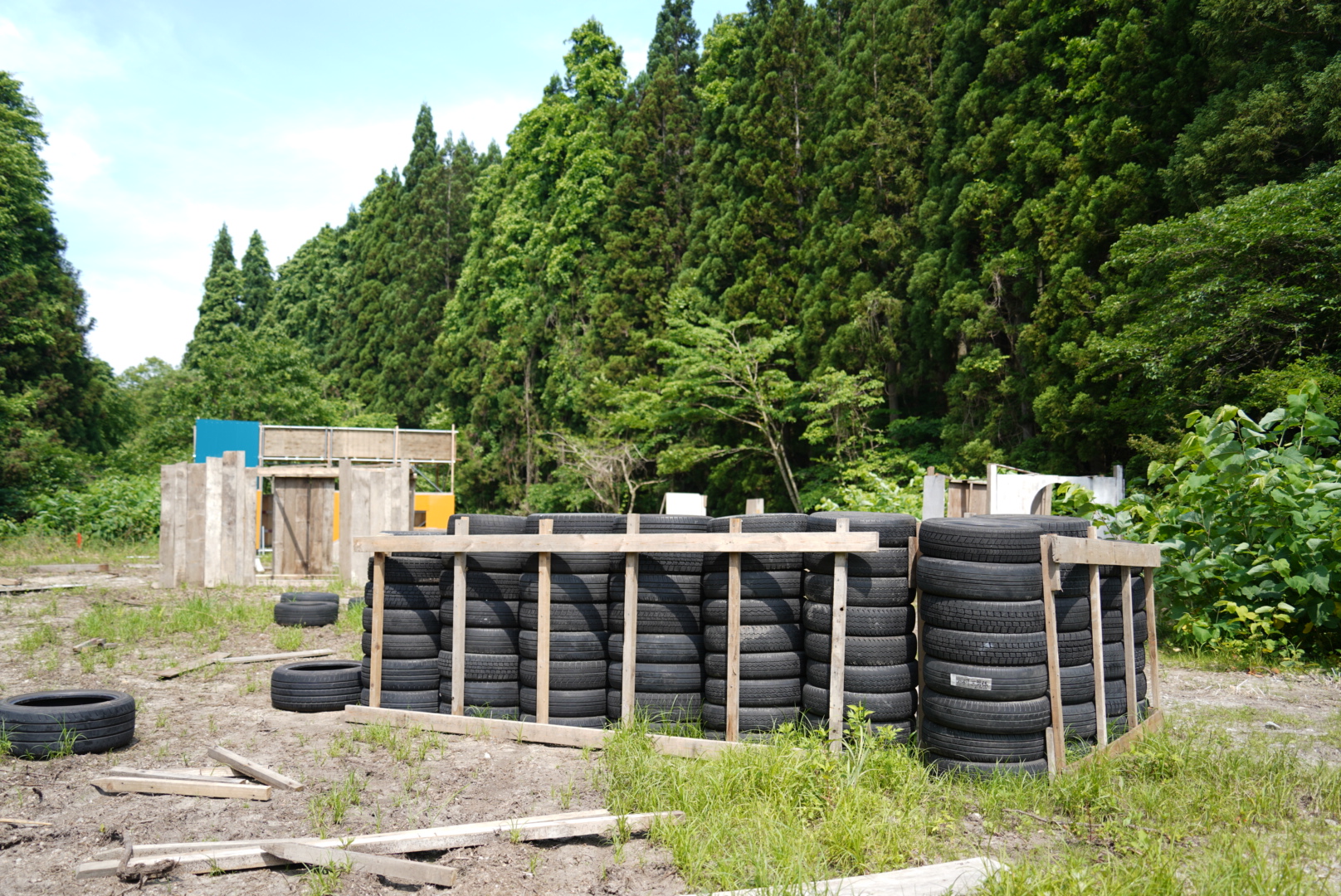 中央エリアに土管とコンテナサイズバリケードを設置。
